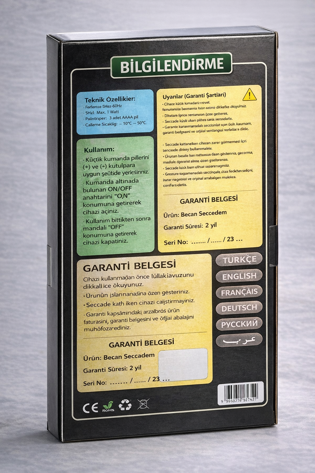 Çocuğunuzun namazı severek öğrenmesi için tasarlanan bu seccade, dokunulan bölgeye göre duaları sesli şekilde rehberlik eder. Hem öğretici hem de eğlenceli bir ibadet deneyimi sunar.