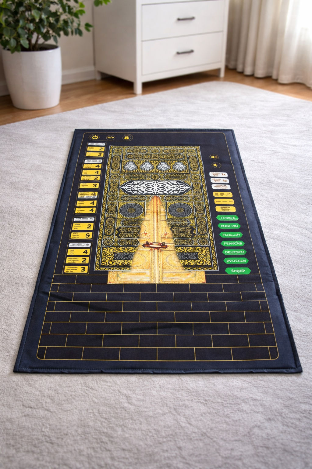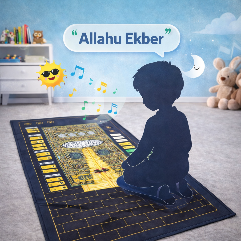Bu akıllı seccade, dokunduğun yerde duaları sesli olarak okur ve namaz adımlarını öğrenmeye yardımcı olur. Çocuklar, yeni başlayanlar ve sureleri tekrar etmek isteyenler için pratik bir rehberdir.
